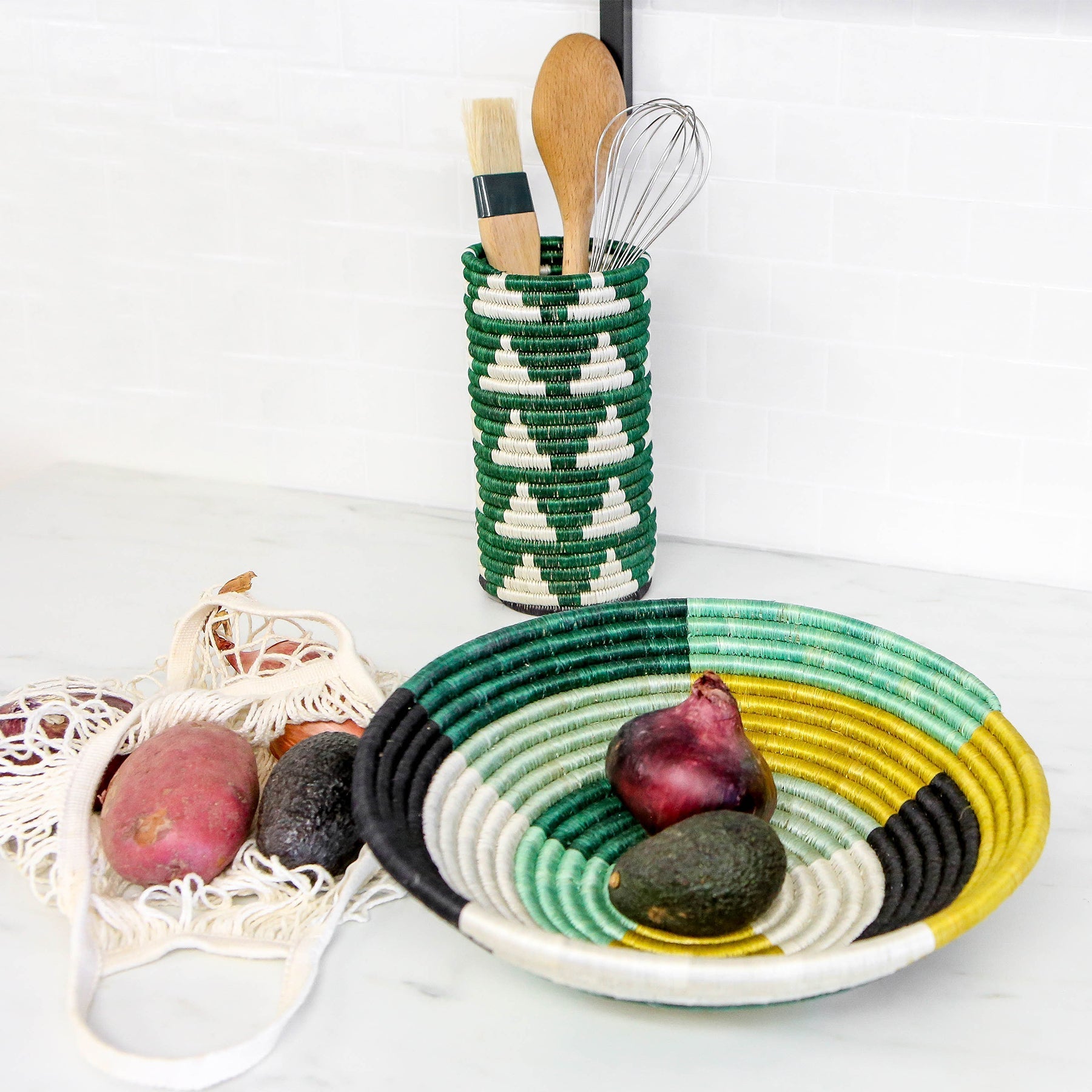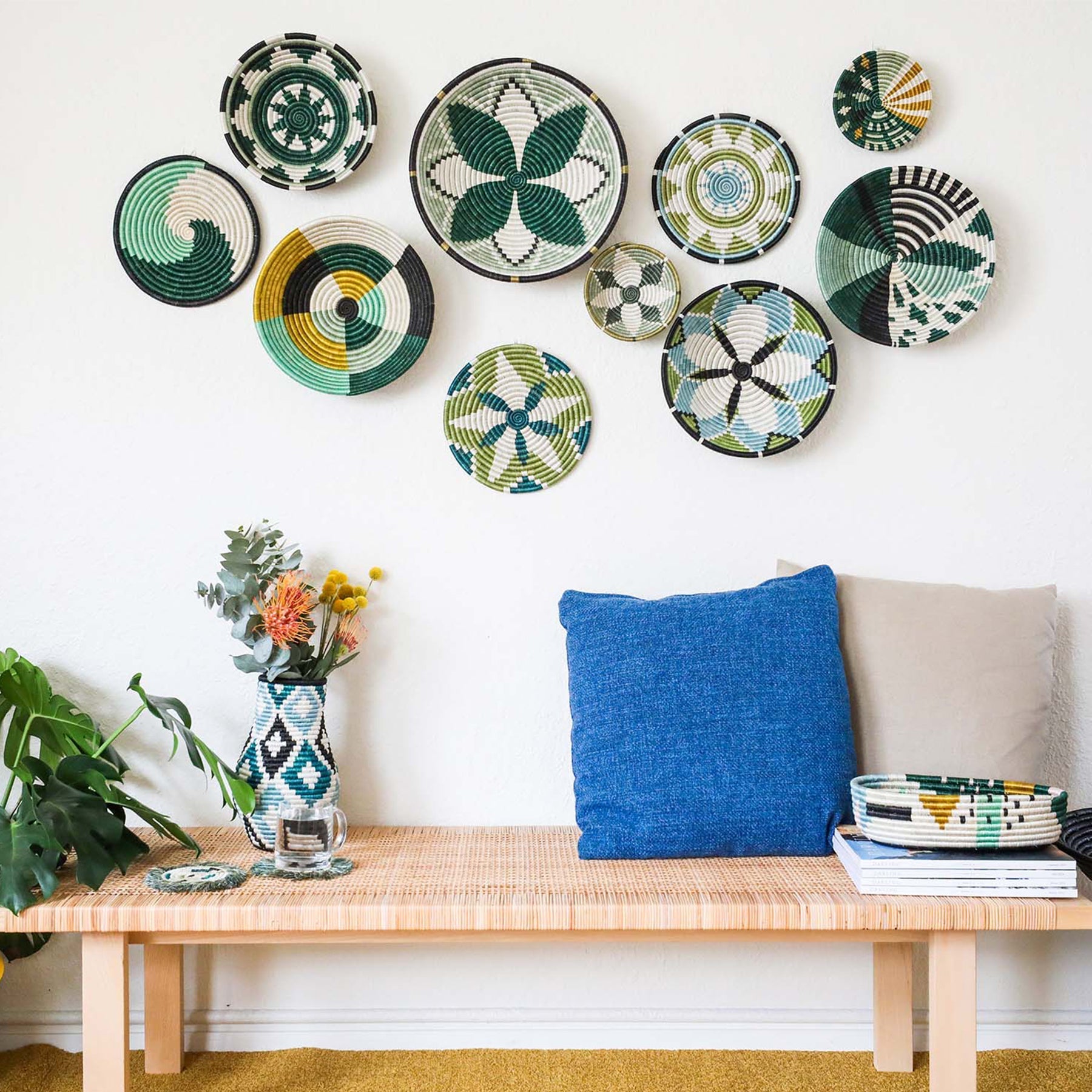 Classic and timeless - the large sisal bowl was the first basket KAZI started carrying. These versatile woven baskets are the perfect size. Style the statement basket on a shelf for additional organization in your living room, add it to your coffee table for a globally inspired feel, or use it as a serving bowl for your favorite fruit. Or, use the basket as storage for keys and mail on your entryway furniture. Most commonly, we find the loop on the back makes this gorgeous piece of wall art ready to hang.