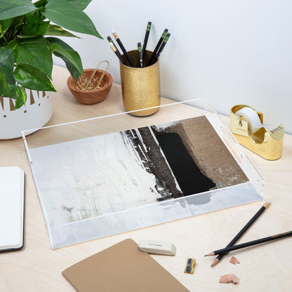 Tray chic. Our acrylic trays come in a small and medium-size to accommodate all your countertop, vanity or desk organizational needs! Featuring designs from our curated selection on the bottom panel, the acrylic trays can adapt to whatever decor style you love and the see-through side panels give them a modern flair. The medium-sized tray even comes with handles, allowing you to take it around the house for nail supplies or, dare we say, breakfast in bed!